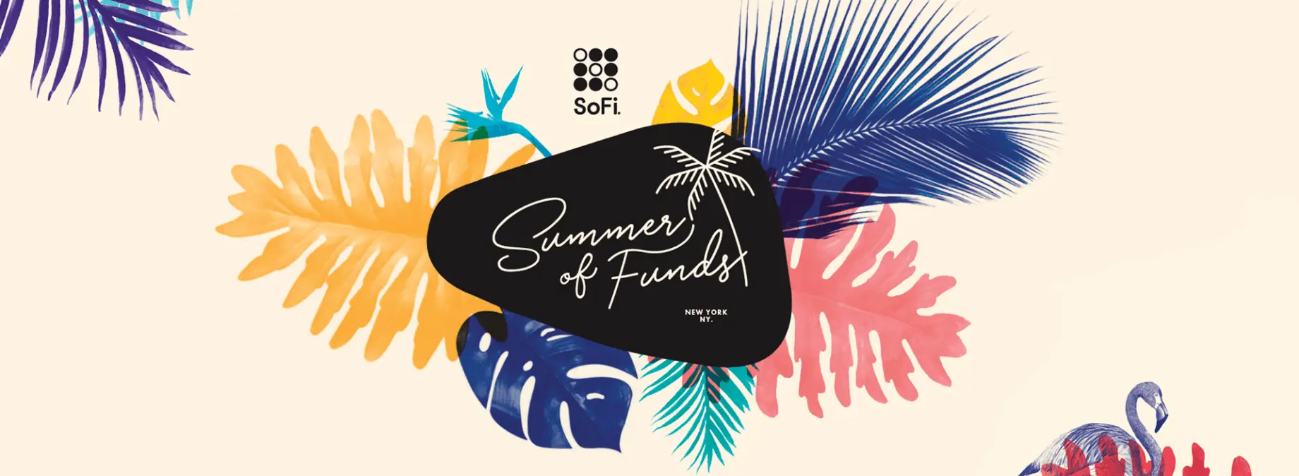 In partnership with Tom Roche productions, we gave SoFi a new event look without breaking their current brand mold. The SoFi brand and color palette were already friendly and approachable, but we needed to inject a night-time friendly color motif to really get the mood going. So, by utilizing some chosen color selects from the established SoFi color palette of primary, secondary, and tertiary colors—and adding an accent black to it—the possibilities were endless. We drew inspiration from the eclectic foliage of a rainforest and the kitschy vibes of Palm Springs and created a world of organic and geometric fantasy— a playful nightlife aesthetic with visuals to be adored— tasteful, fun, and chic.
