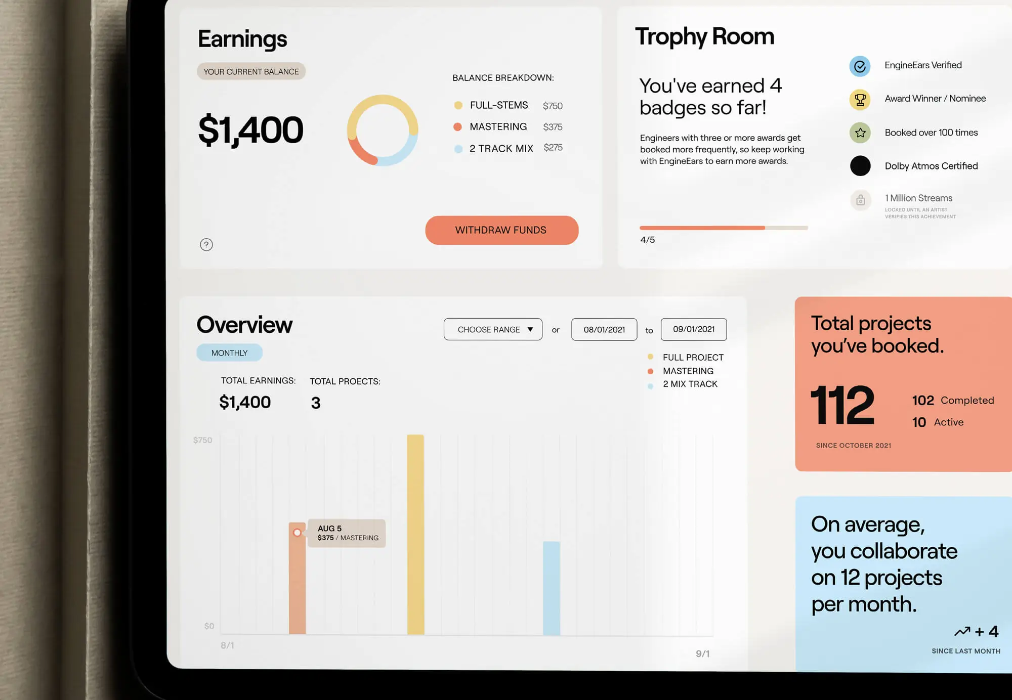 We partnered with EngineEars to bring their mission to life visually and digitally. Through a refined brand identity and a streamlined, creator-first launch website, we helped set the stage for their next chapter, making it easier for artists, engineers, and producers to understand the platform’s value and take action. The result: a look and feel as intuitive and professional as the experience itself