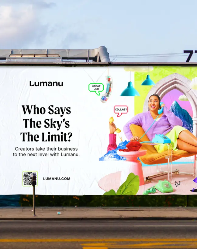 Lumanu had built a powerful platform for creators, but their brand felt too buttoned-up for an audience defined by self-expression and ambition. We reimagined their identity from the ground up—developing a bold, unapologetically creative brand and a surreal, collage-inspired campaign that brought their vision to life across social, OOH, and digital, positioning Lumanu as a true champion of the creator economy.