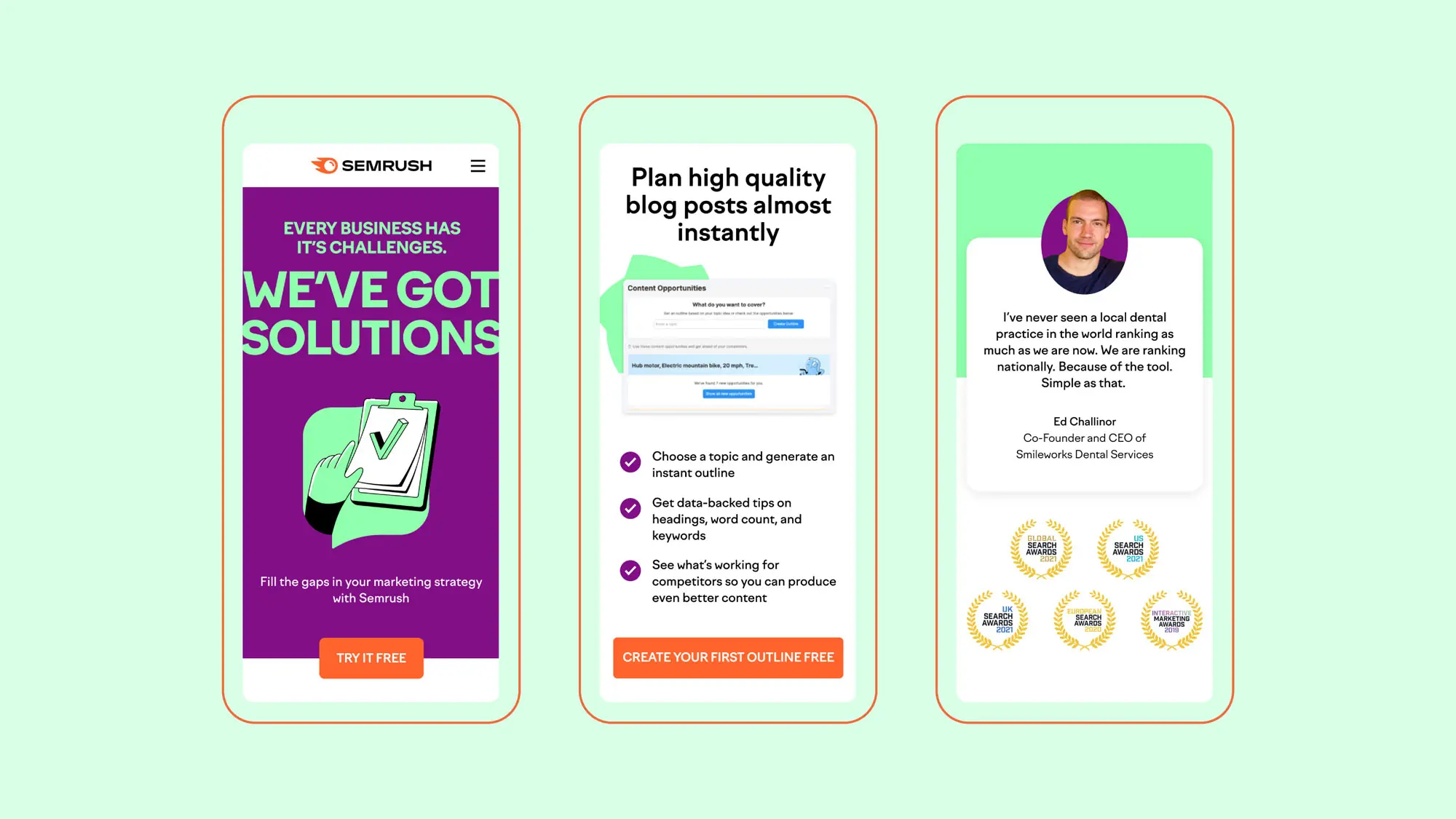 The Semrush suite of online marketing tools helps small business owners achieve big results. To spread the word, Born & Bred developed a global digital marketing campaign, including strategy, design, animation, and copywriting—that included more than 600 assets and was translated into 11 different languages.