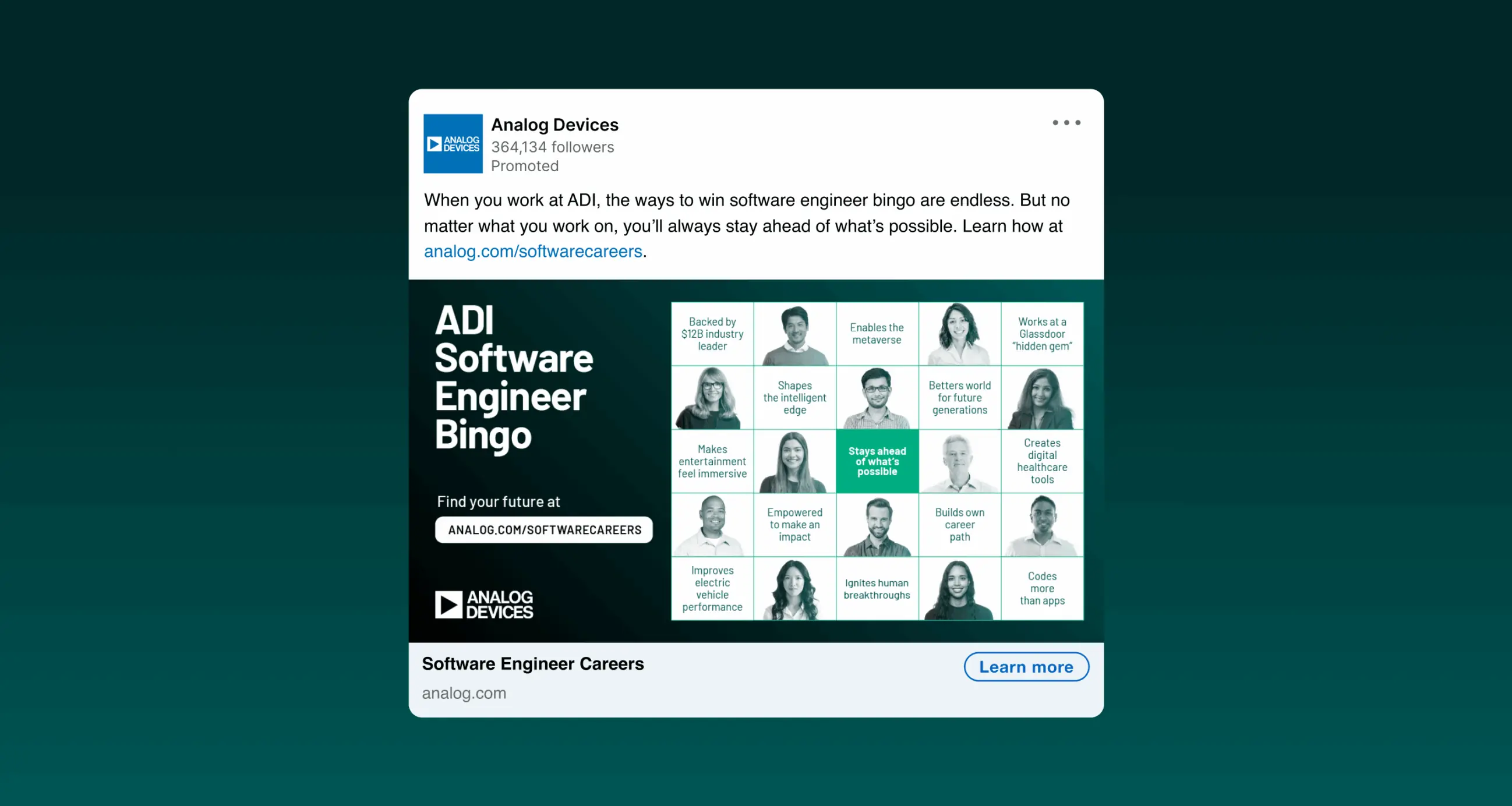 For more than 50 years, Analog Devices has developed cutting-edge innovations. As the company grew to nearly $100 billion, its brand needed to grow, too. ADI had evolved into more than a semiconductor manufacturer. It is now an innovative technology company that works with the world’s largest companies to create game-changing solutions in sustainability, healthcare, transportation, and manufacturing. To reflect this shift, Born & Bred partnered with ADI to create engaging social media content that positioned the brand as a thought leader in the category. With distinctive design, storytelling, animation, and data visualization, our content strategy pushed the ADI brand to the next level.