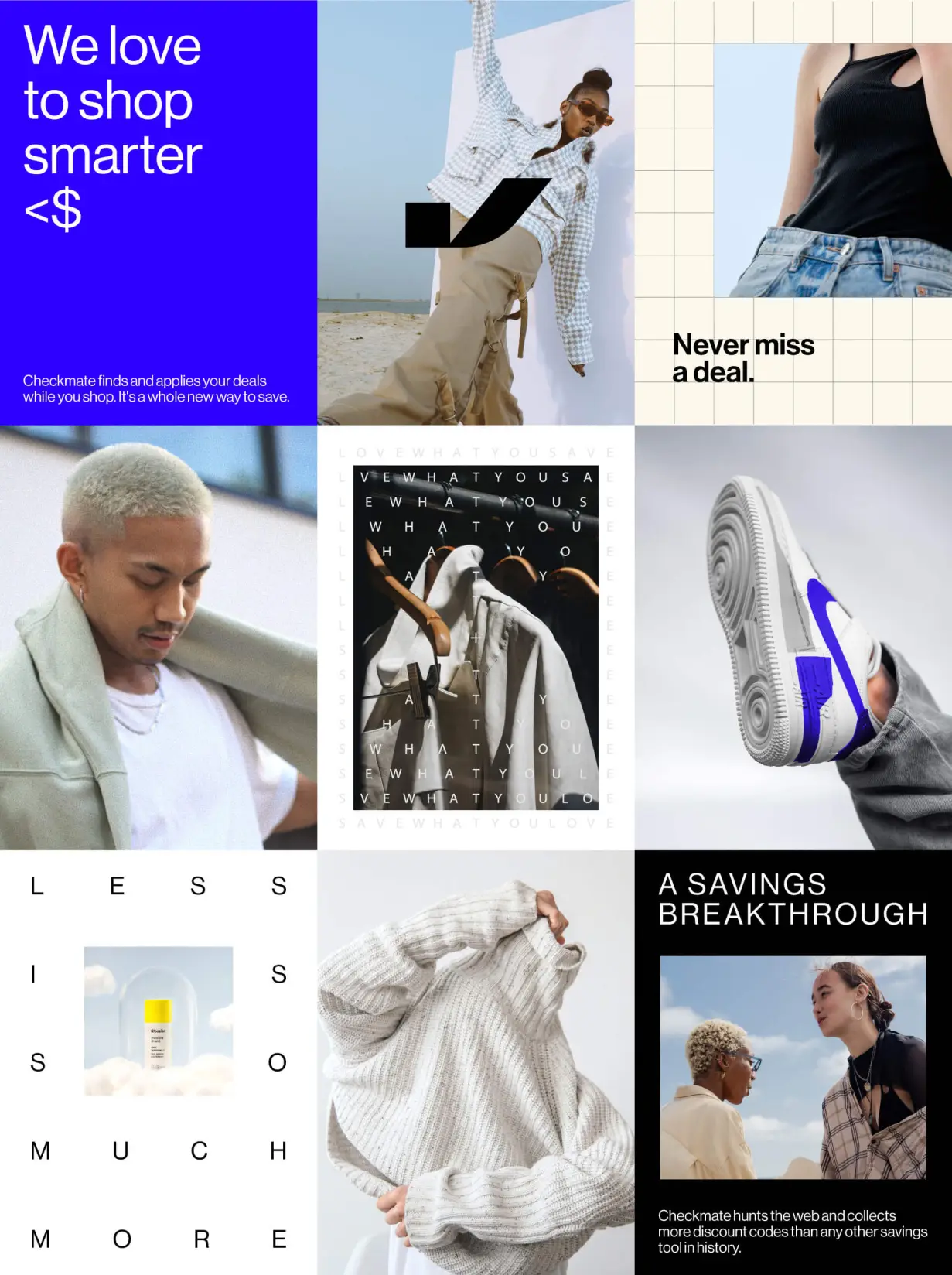 One of the biggest frustrations for online shoppers is paying more than they have to. Checkmate set out to solve this with a personalized tool that automatically finds the best discount codes — from inbox to internet — and applies them at checkout. But while the product delivered a seamless and intelligent user experience, the brand didn’t. The original identity lacked distinction, reliability, and modernity, making it hard to build trust or capture attention in a crowded market.